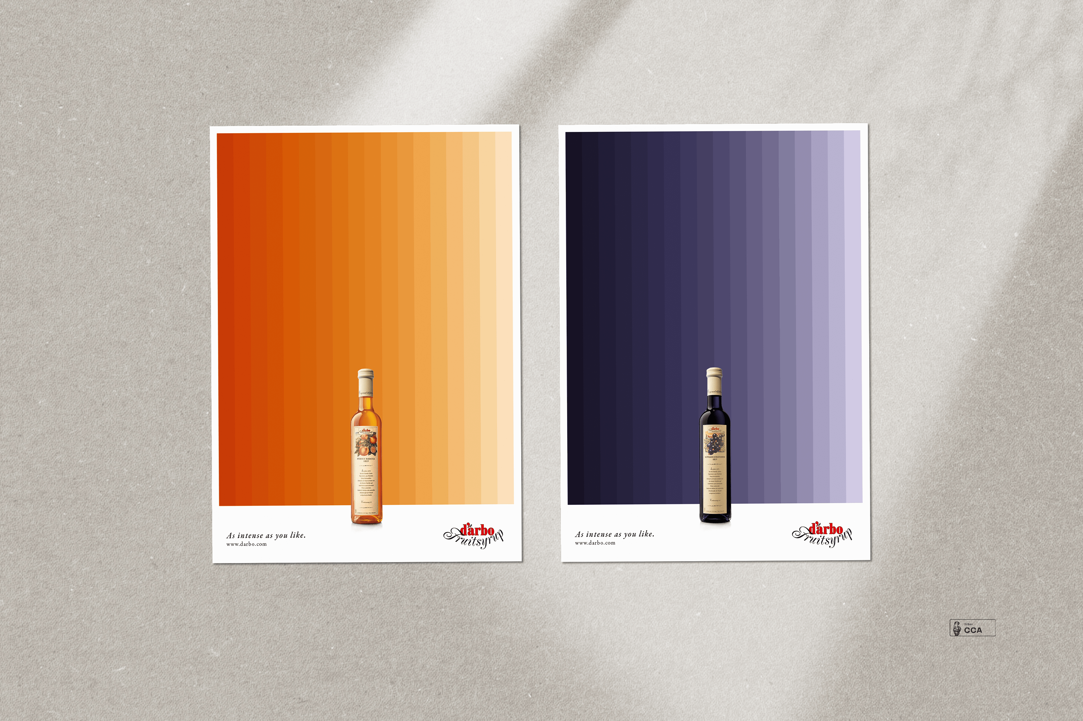 Zugegeben, eine klassische Goldidee – die Silber gewonnen hat. Die Idee dahinter ist, dass jeder seinen Sirup anders verdünnt. Mit Darbo Sirup hast du es also so fruchtig wie du willst. Nach langem Grübeln fand ich die verlaufenden Farbstreifen als Hintergrund die direkteste Botschaft für diesen Insight.
